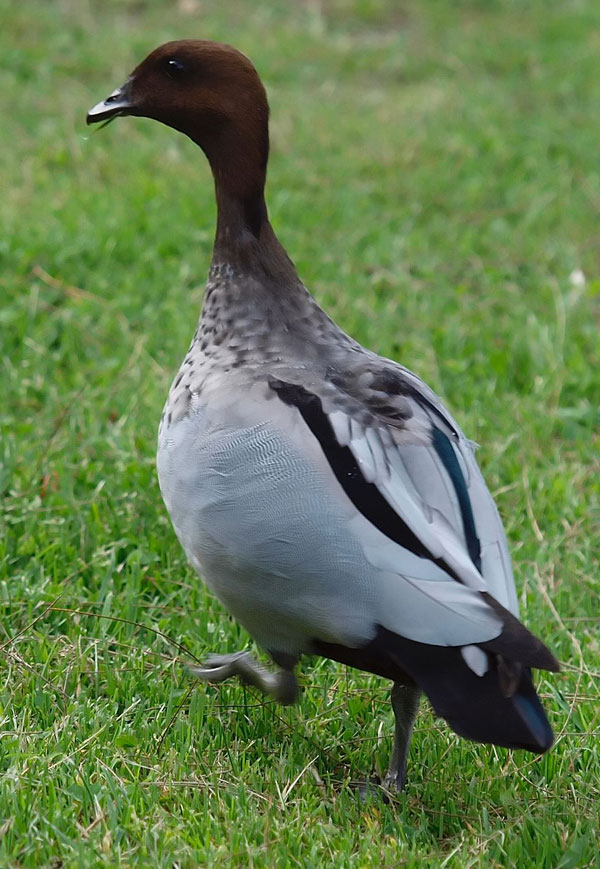 above and below eye. Dabble in shallow water, graze in grasslands. Nest