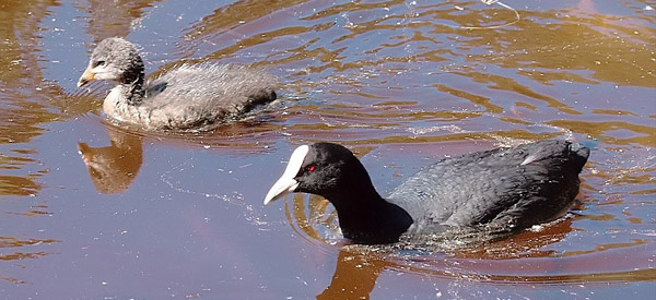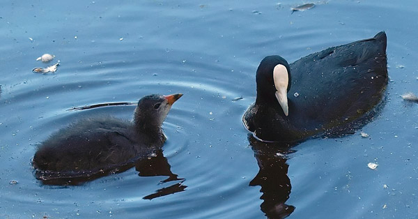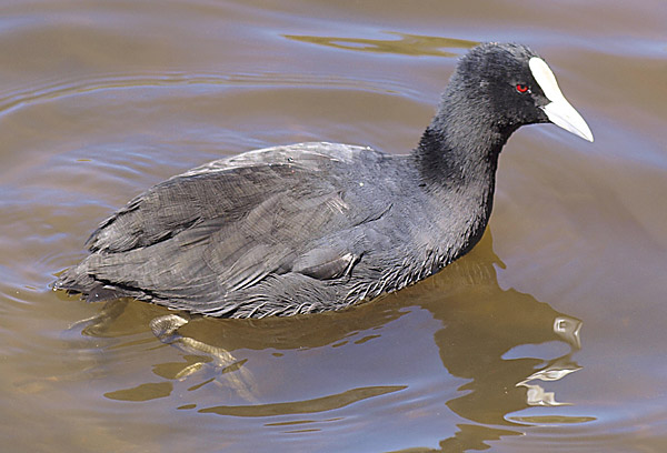numbers. A black or dark slate-grey waterbird with a white frontal shield