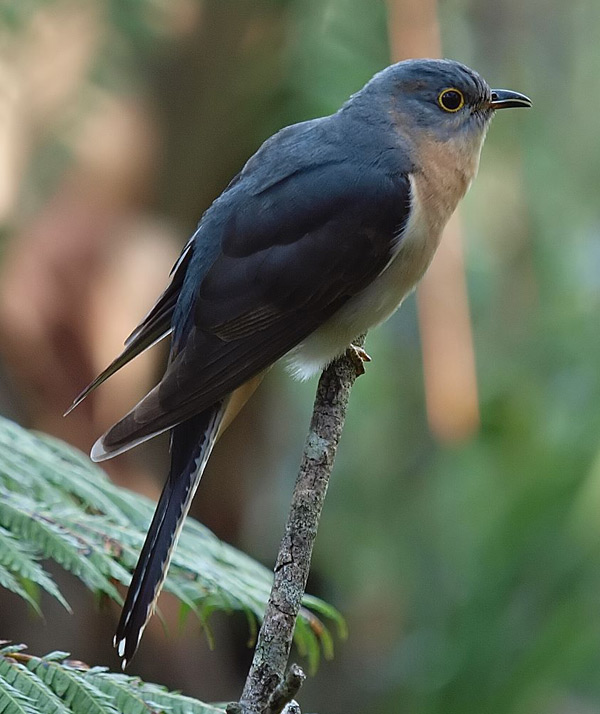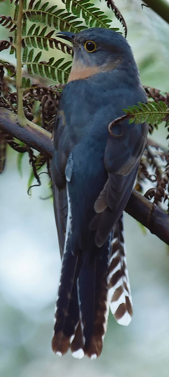 yellow eye-ring and wedge-shaped tail with strongly marked white notching.