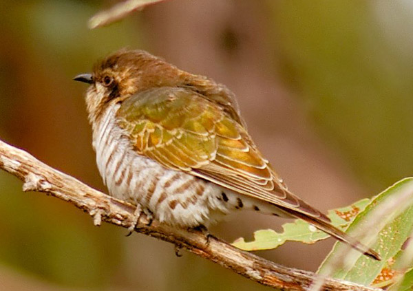 breast with bold brown barring, not meeting in centre. Eye is dark with